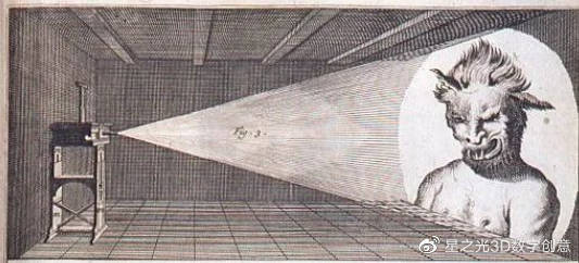 17世紀,Christian Huygens和Athanasius Kircher發(fā)明了“魔法幻燈”,通過蠟燭將鏡頭上的特制內容投射到熒光屏上,這就是最早的投影機。