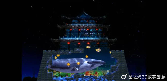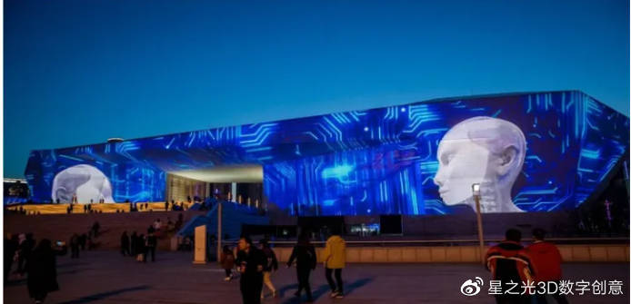 全息建筑是一種將主體材料投射到建筑表面的數(shù)字化多媒體投影技術(shù),再將大量的主題材料與影像融合,再結(jié)合燈光、音響等媒介,將靜止建筑的光影效果轉(zhuǎn)化為動態(tài)場景!