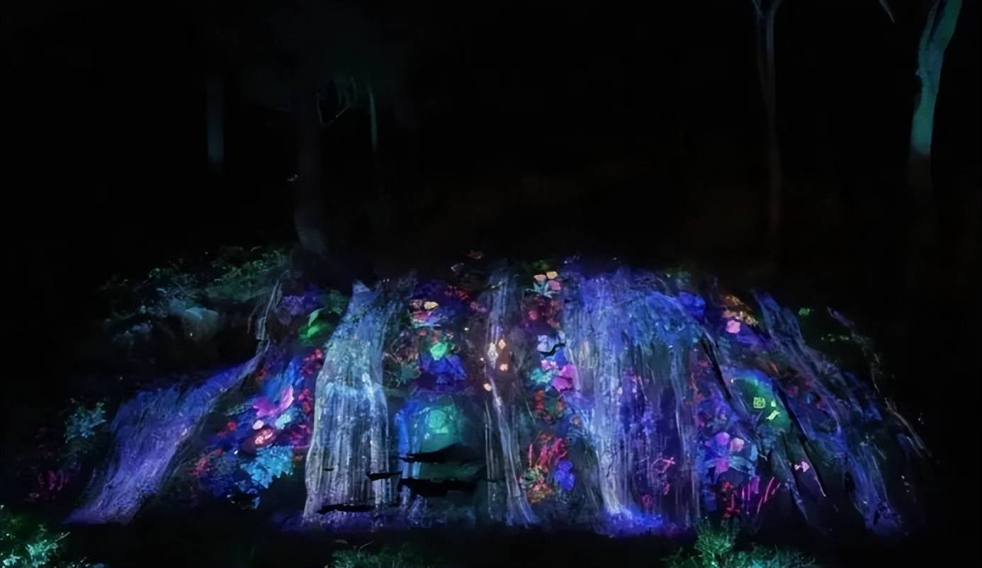 整個夜游項?共有15個主題空間。包括光?、神秘瀑布、??茶花、秘密?坊等,其中還運?到了 景觀照明、全息投影、3D投影、激光等技術(shù)。