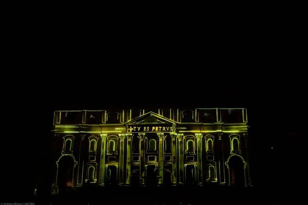 因此,教會以燈光秀的方式點(diǎn)亮圣伯多祿大教堂。教堂正立面每15分鐘(晚上9點(diǎn)到11點(diǎn))被點(diǎn)亮(視頻投影)一次,向人們講述首任教宗圣伯多祿的故事,以此作為即將到來的禧年準(zhǔn)備工作的一部分。
