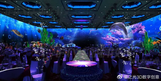 各種主題可以隨意變幻,一會兒是美輪美奐的海底世界,一會兒是以花海為背景,一會兒是茂密的原始叢林,一會兒是古典的中國風,一會兒是古色古香的畫面,再也不用擔心客人們會厭煩,很有儀式感。
