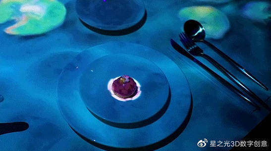 全息光影餐廳在餐桌上也和傳統(tǒng)的餐廳不同,他們使用了全息投影技術(shù),將餐桌變成了一個(gè)互動(dòng)的屏幕。