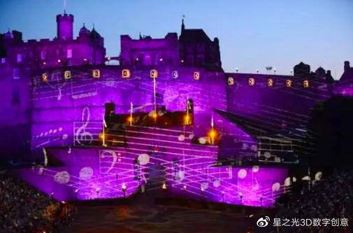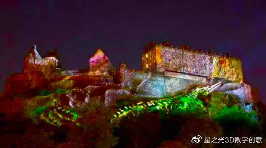在蘇格蘭最有代表性的地方,用3D Mapping的全息影像覆蓋了整個(gè)城堡和場(chǎng)地。