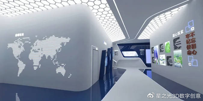 展館的入口通常是面向圖像墻的,從這里可以大致了解展館的大致面貌,在入口處我們可以設(shè)置一扇電動玻璃門,通過玻璃門可以觀察到整個大廳,同時通過自動打開和關(guān)閉的方式,可以給人一種科技感。