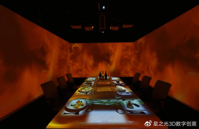 全息3D投影餐廳,是以建筑投影、智能交互為技術(shù)的全新感官餐廳,將傳統(tǒng)的味覺(jué)體驗(yàn)升華為觸覺(jué)、視覺(jué)、味覺(jué)等多方面的體驗(yàn),讓消費(fèi)者在品嘗美味的同時(shí),也可以沉浸在投影的世界中,與各種智能交互,感受到高科技帶來(lái)的新鮮感。