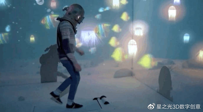 這個工作使用了投射技術(shù),產(chǎn)生了許多很有意思的效果,它確實凸顯了這項技術(shù)的潛力。觀看演員們與燈光互動-下樓梯,伸手觸摸并不存在的門把手,乘地鐵,漫游海底,跳進未知的山洞…盡情享受這一旅程!