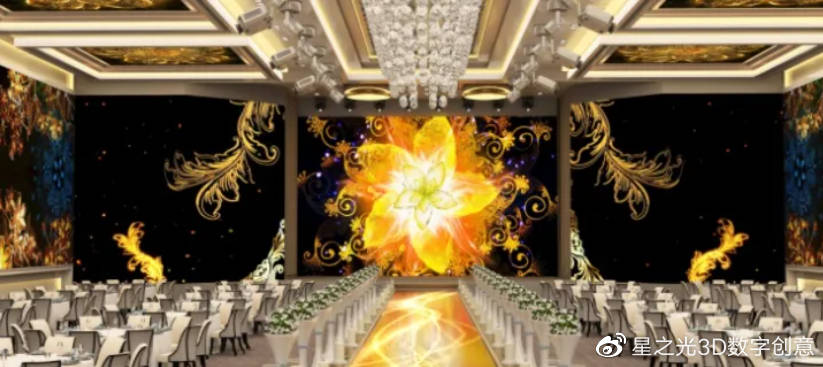 5D全息宴會廳僅僅只需要少量的軟裝,就可以使整個(gè)婚禮現(xiàn)場的5D效果更加完美,同時(shí)也為新人們節(jié)約了大量的婚禮場地搭建成本。